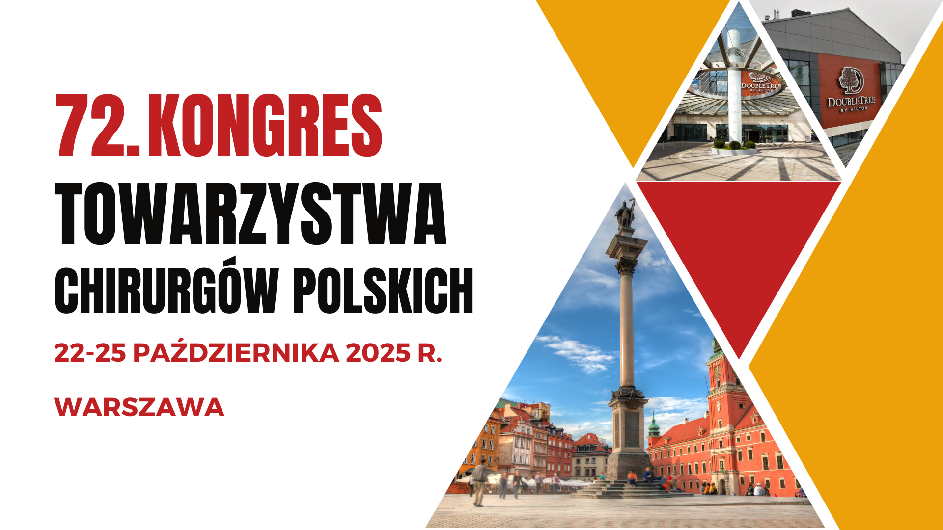 z wielką przyjemnością, w imieniu Zarządu Towarzystwa Chirurgów Polskich oraz własnym, serdecznie zapraszam do udziału w kolejnym 72. Kongresie Towarzystwa Chirurgów Polskich w Warszawie, w gościnnych podwojach Hotelu DoubleTree by Hilton w Warszawie, w dniach 22-25 października 2025 roku.
